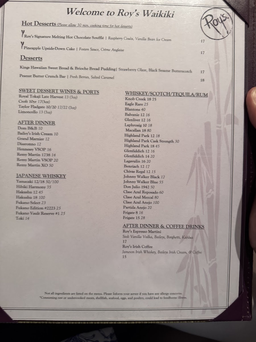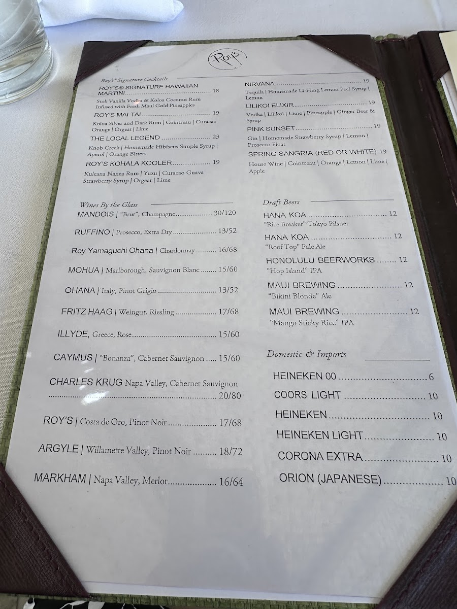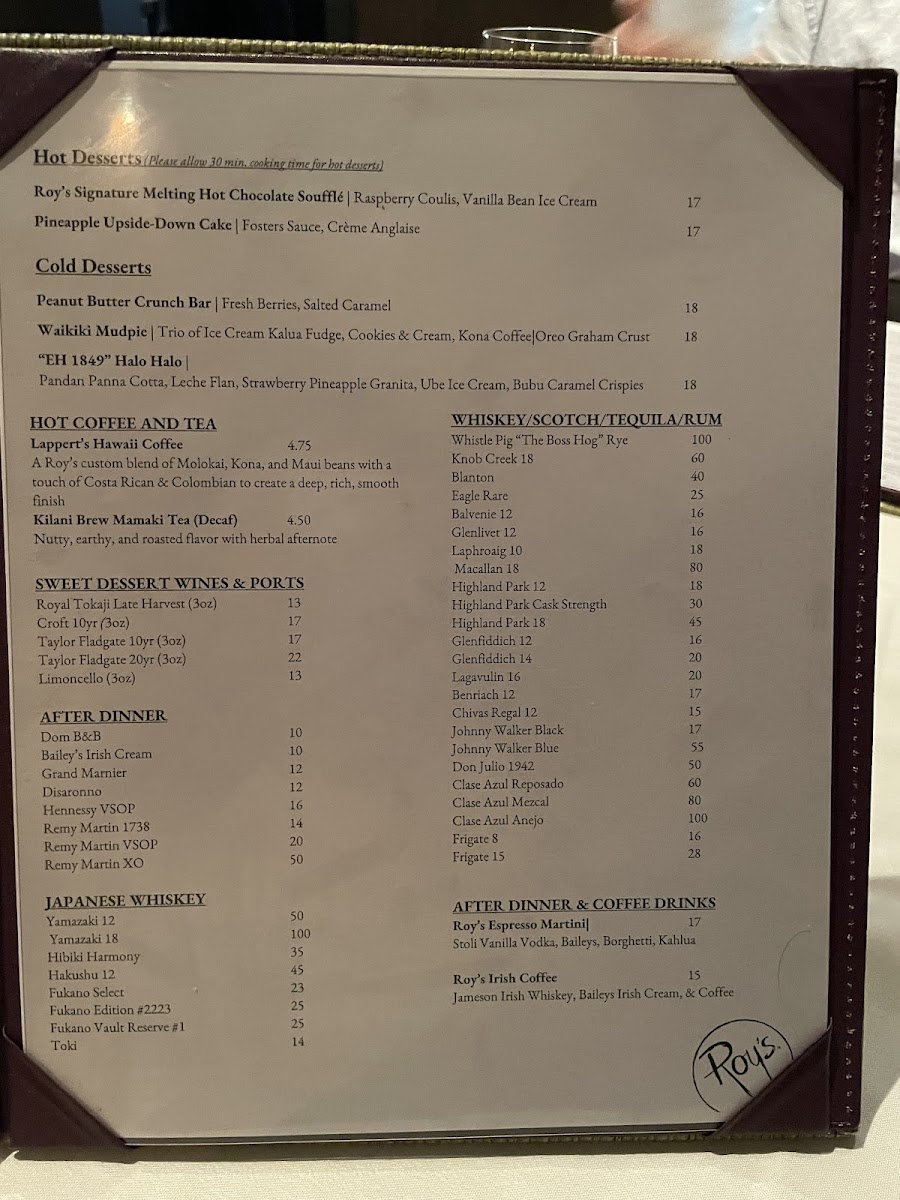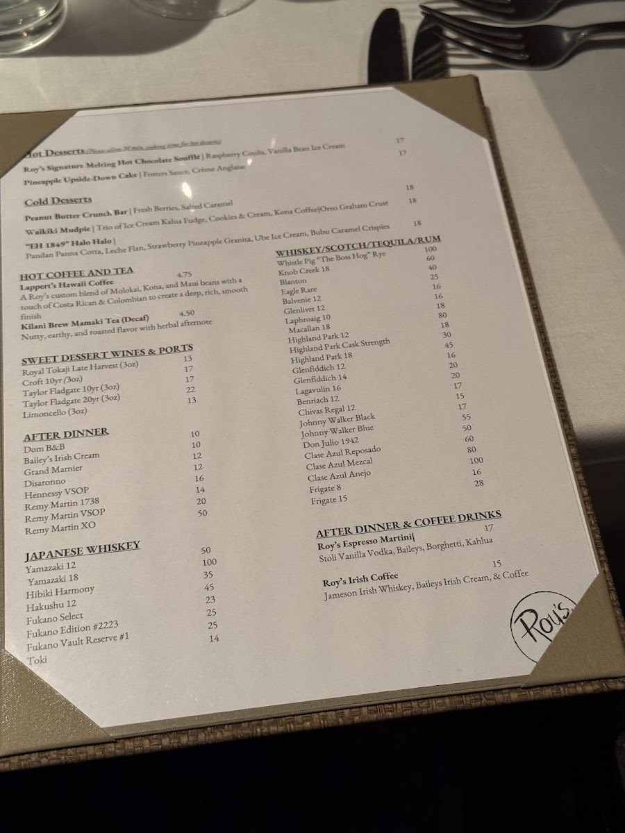 The moment you step into Roy's, you’re greeted by a sophisticated yet welcoming atmosphere enhanced by warm lighting and exquisite décor. The attentive staff embody professionalism and pride, ensuring an exceptional dining experience from start to finish. Whether you're celebrating a special occasion or simply seeking an unforgettable meal, Roy's Waikiki sets the perfect stage for a memorable night out.